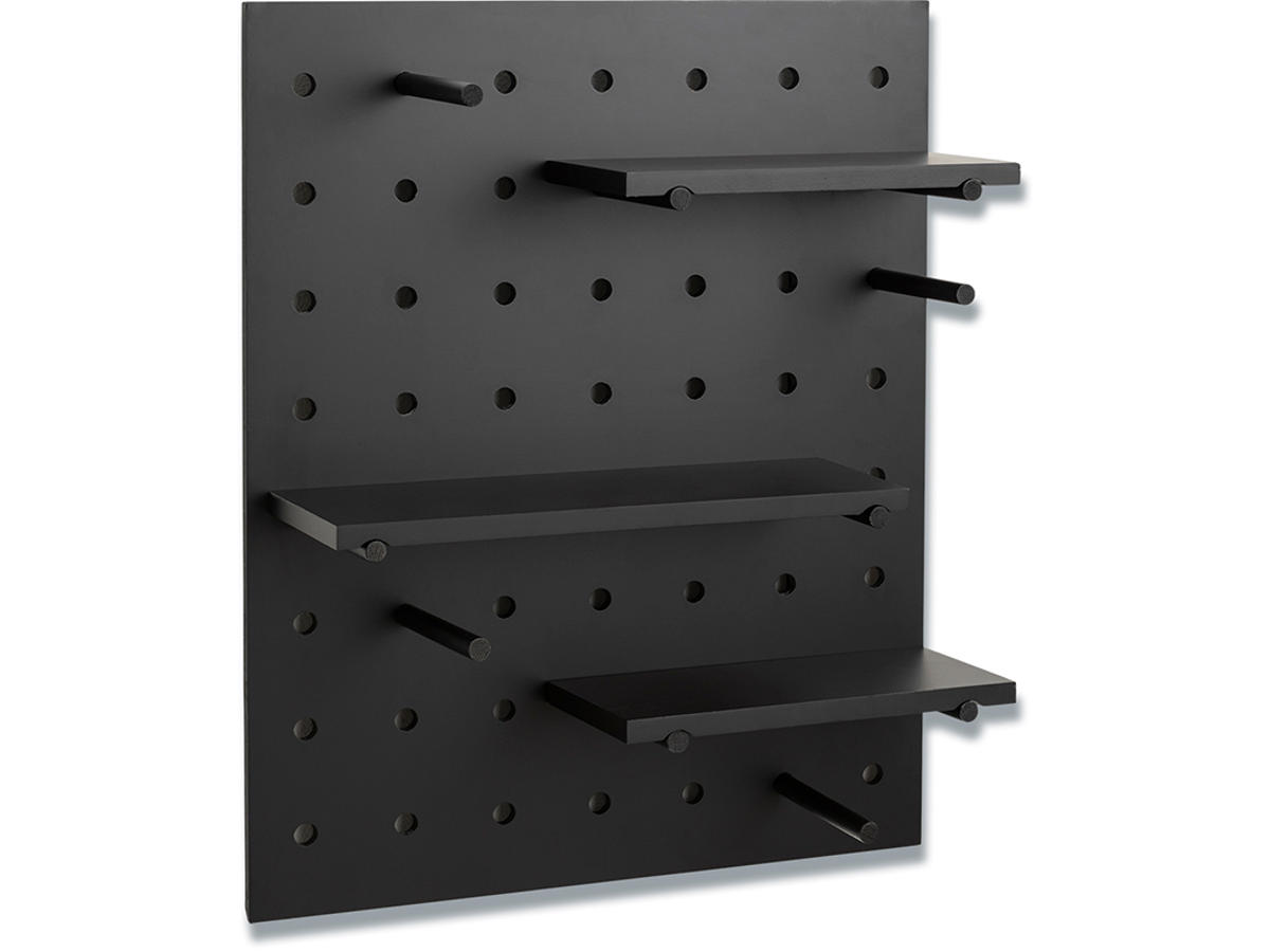 Hylder og pinde til ophæng kan flyttes og placeres i de huller, man ønsker.