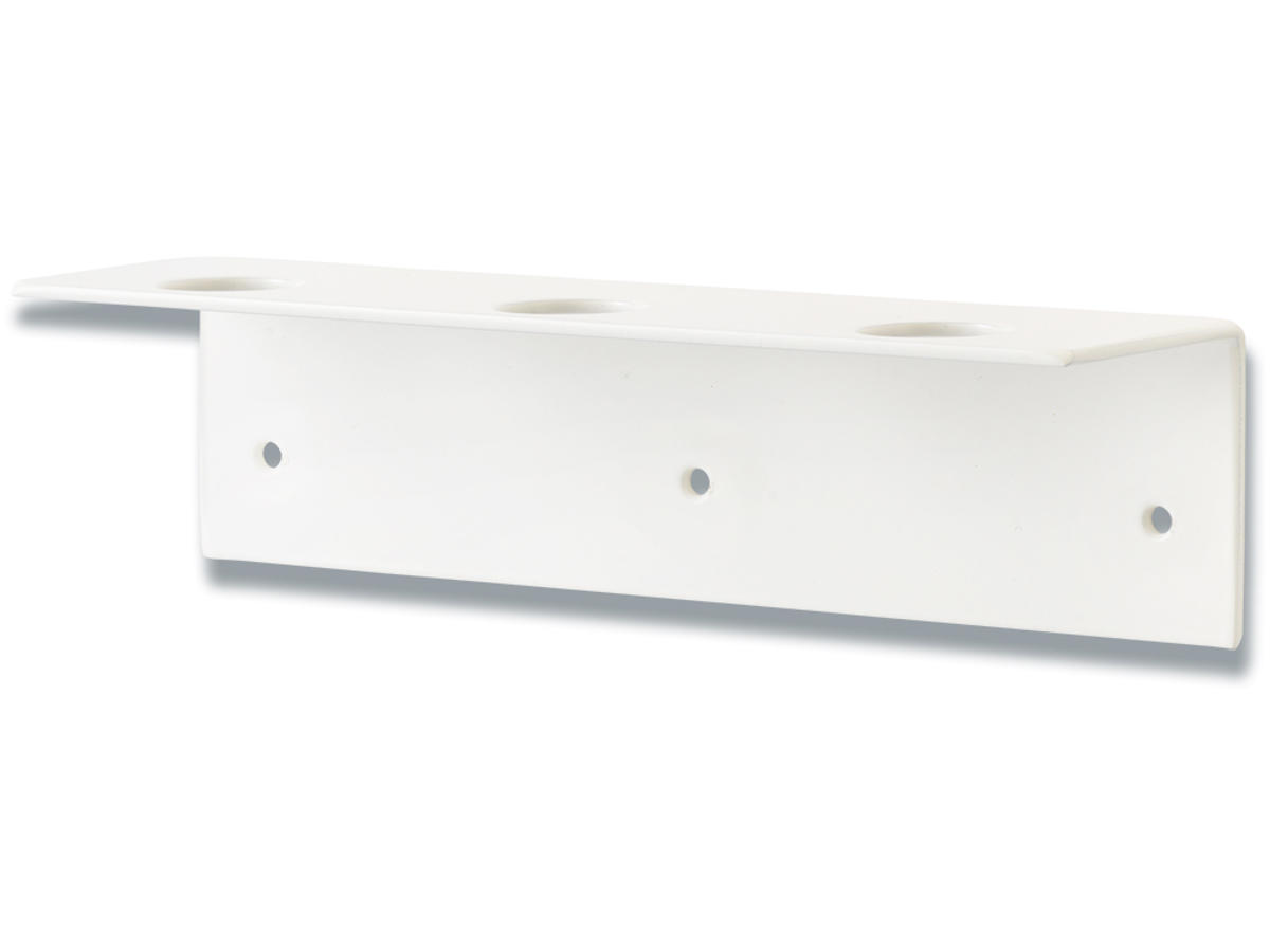 Hvid metal sæbeholder til 3 flasker med håndsæbe, shampoo, lotion m.v. Sæbeholderen er velegnet i både køkken og badeværelse. Slip for at have grimme flasker stående på køkkenbordet eller vasken. Hæld shampoo m.v. i pæne flasker, og hæng dem op på væggen i stedet for. Anvend evt. apotekerflasker, se f.eks. vores håndsæbe, som kan genbruges.