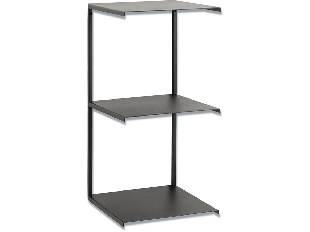 Tredobbelt hylde, sort metal. 20 x 20 x 40 cm. Brug den til opbevaring af magasiner, bøger, planter og andre småting.