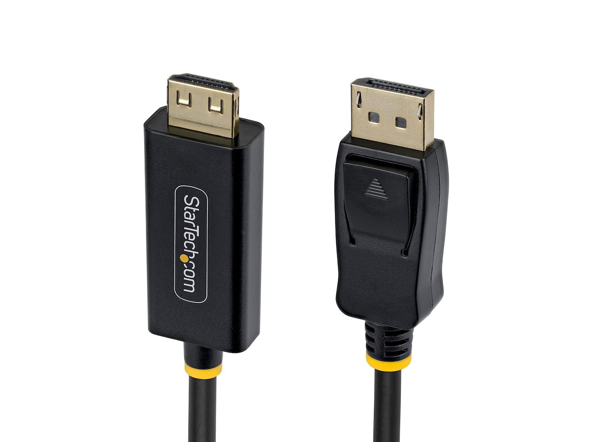 Integrated video adapter cable reduces points of failure, signal loss and clutter, and requires no additional power. Built with adaptive receiver equalization to optimize the input signal and amplify the output signal, to ensure display compatibility. Cage shielding prevents Electromagnetic Interference (EMI) and helps maintain signal integrity. This Active Adapter Cable works with computers from Dell, HP, Lenovo, and other desktop manufacturers. It is backward compatible with 4K 30Hz, 1080p, and other lower resolutions. -