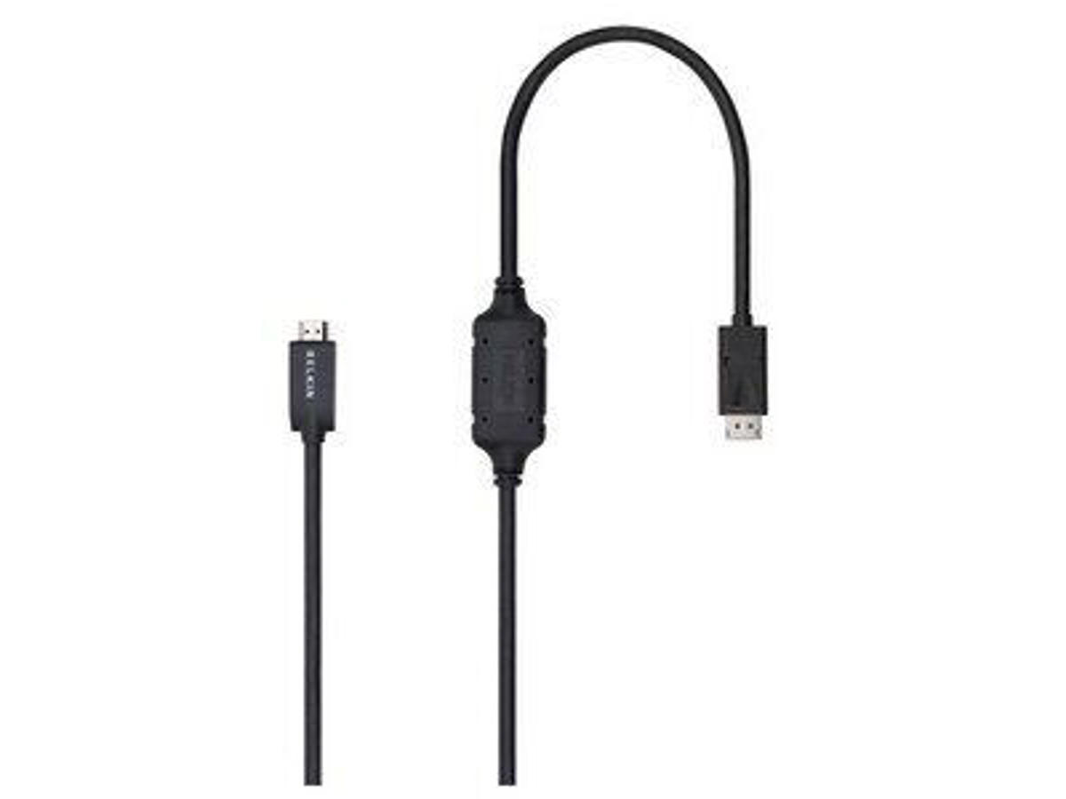 DisplayPort to HDMI cable from Belkin brings all-digital and high-performance cable standard to the life. Constructed with tinned, copper-braided shield the cable provides ideal digital display interface standard for maximum high-definition performance in one cable. It works with any DisplayPort and HDMI enabled desktop, laptop, or monitor that delivers extreme refresh rates, intense color depths, and high resolution. With the highly scalable DisplayPort technology the cable is the future-proof standard for all embedded and box-to-box applications.