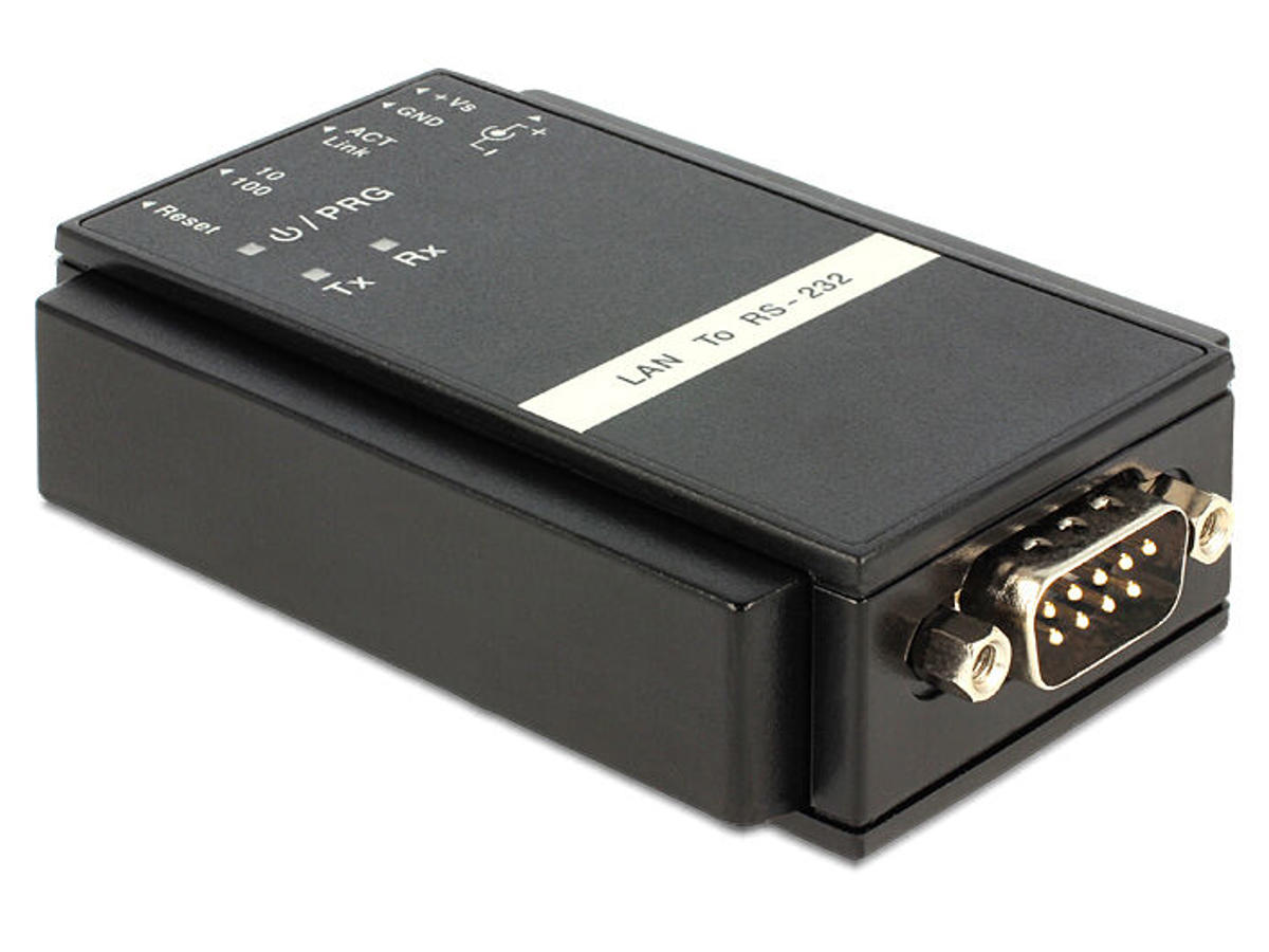 The Delock Ethernet to RS-232 converter by Delock enables you to integrate and control serial devices based on RS-232 via your network.