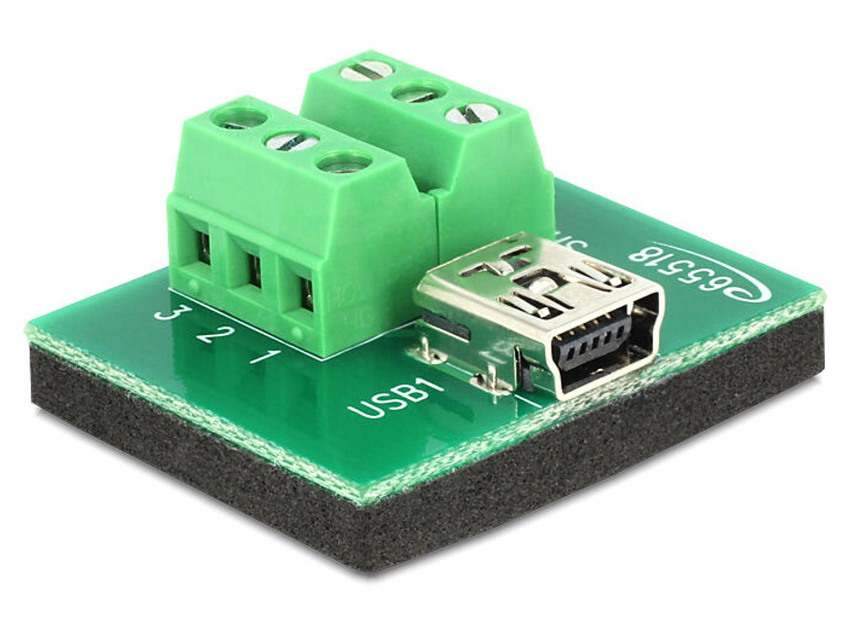 This Mini USB to Terminal Block adapter is made for special industrial application e.g. for connecting single wires with open cable heads.