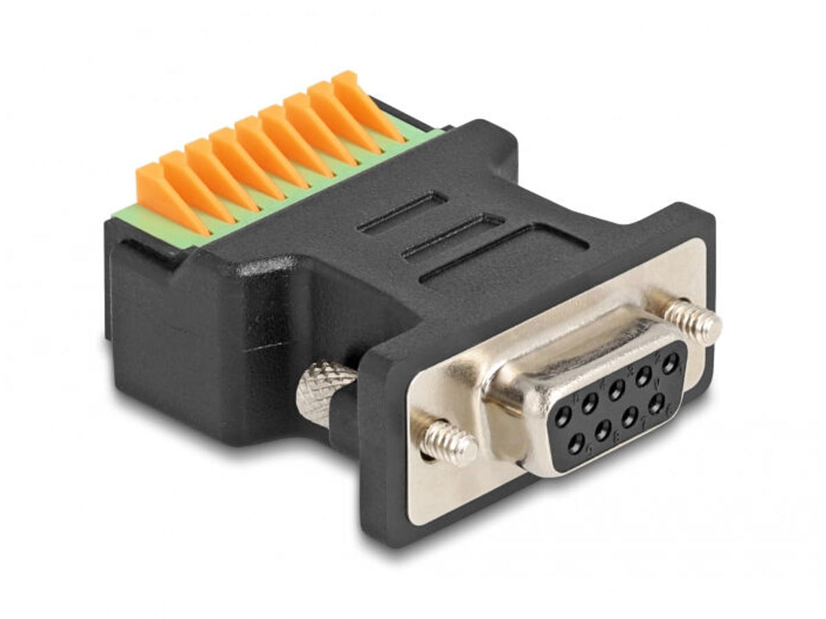 DeLOCK 66559. Stik 1: D-Sub 9 pin, Stik 2: 9 pin terminal block, Stikforbindelse kontakter plettering: Guld. Produktfarve: Sort
