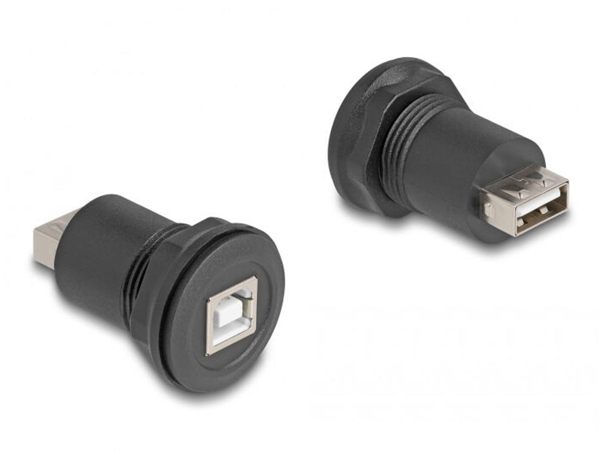 This USB built-in connector by Delock can be used in a switch cabinet or distribution box to connect two USB plugs together.