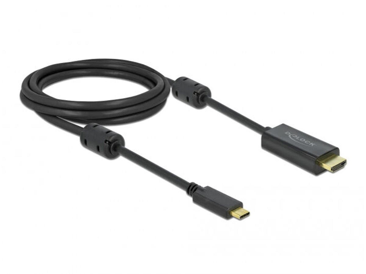 DeLOCK 85970. Kabellængde: 2 m, Stik 1: USB Type-C, Stik 2: HDMI. Kabeldiameter: 4,7 mm. Pakketype: Polybag. Antal pr. pakke: 1 stk