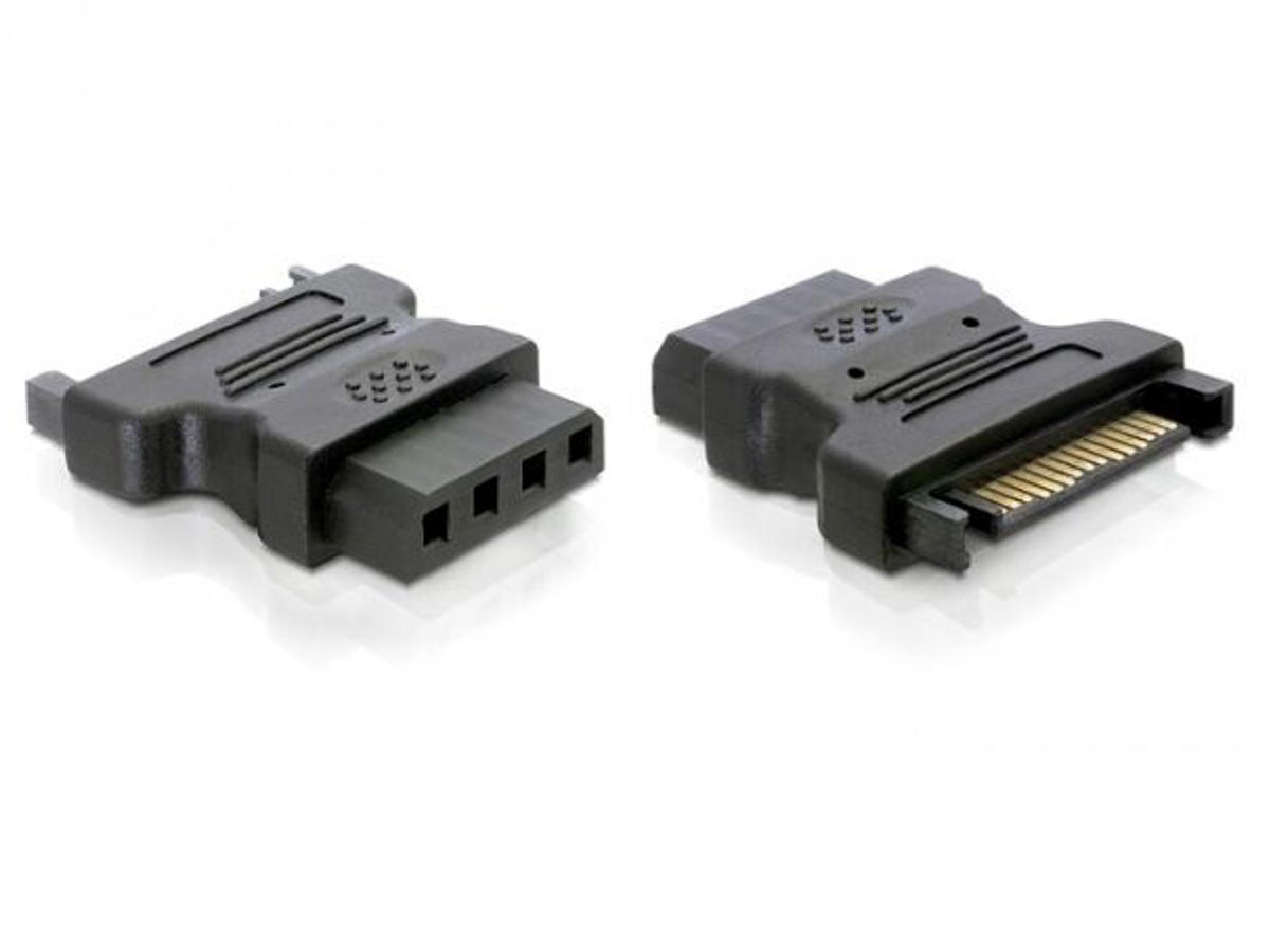 DeLOCK Adapter Power - IDE drive > 4 Pin. Stik 1: SATA 15 p, Stik 2: IDE 4p. Produktfarve: Sort