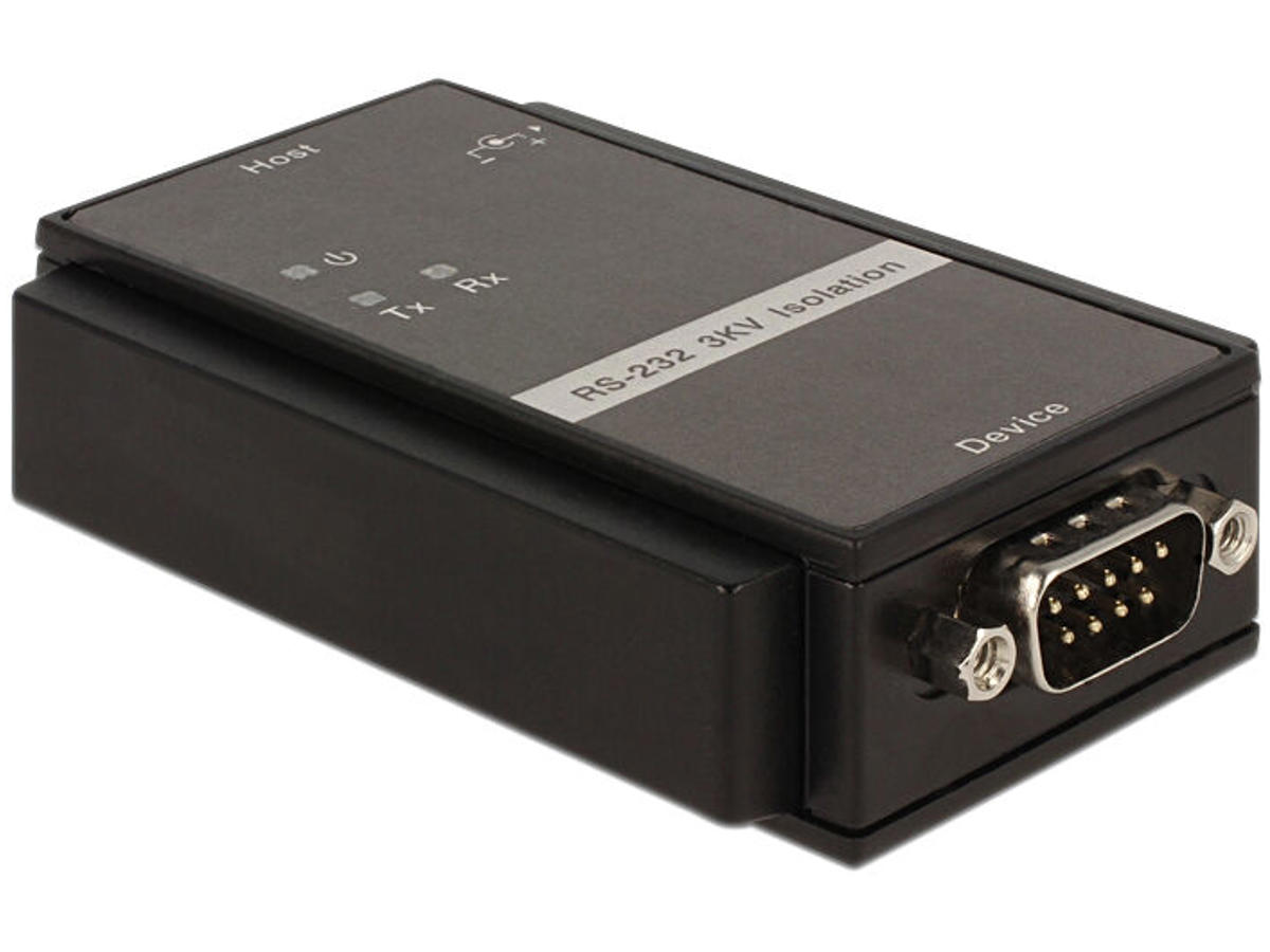 The Delock RS-232 converter separates the electrical connection between Host-PC and USB device. The galvanic isolation avoids the disturbing noises in the audio field and inexact measuring results in the laboratory field.