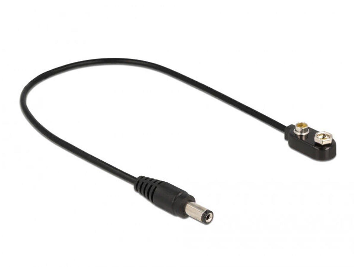 DeLOCK 86697. Stik 1: 9 V block battery, Stik 2: DC 5.5 x 2.1, Kabellængde: 0,3 m. Produktfarve: Sort
