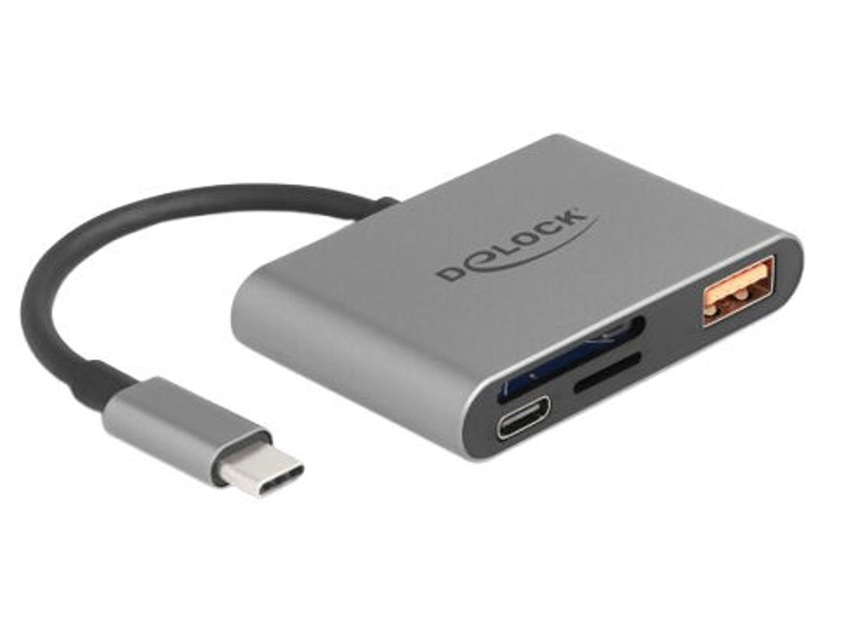 DeLOCK 91016. Kompatible hukommelseskort: MicroSD (TransFlash), SD, Produktfarve: Grå, Dataoverførselshastighed: 10000 Mbit/s. Grænseflade: USB 3.2 Gen 2 (3.1 Gen 2) Type-C. Bredde: 40 mm, Dybde: 61 mm, Højde: 11 mm. Antal pr. pakke: 1 stk, Pakketype: Hængende boks