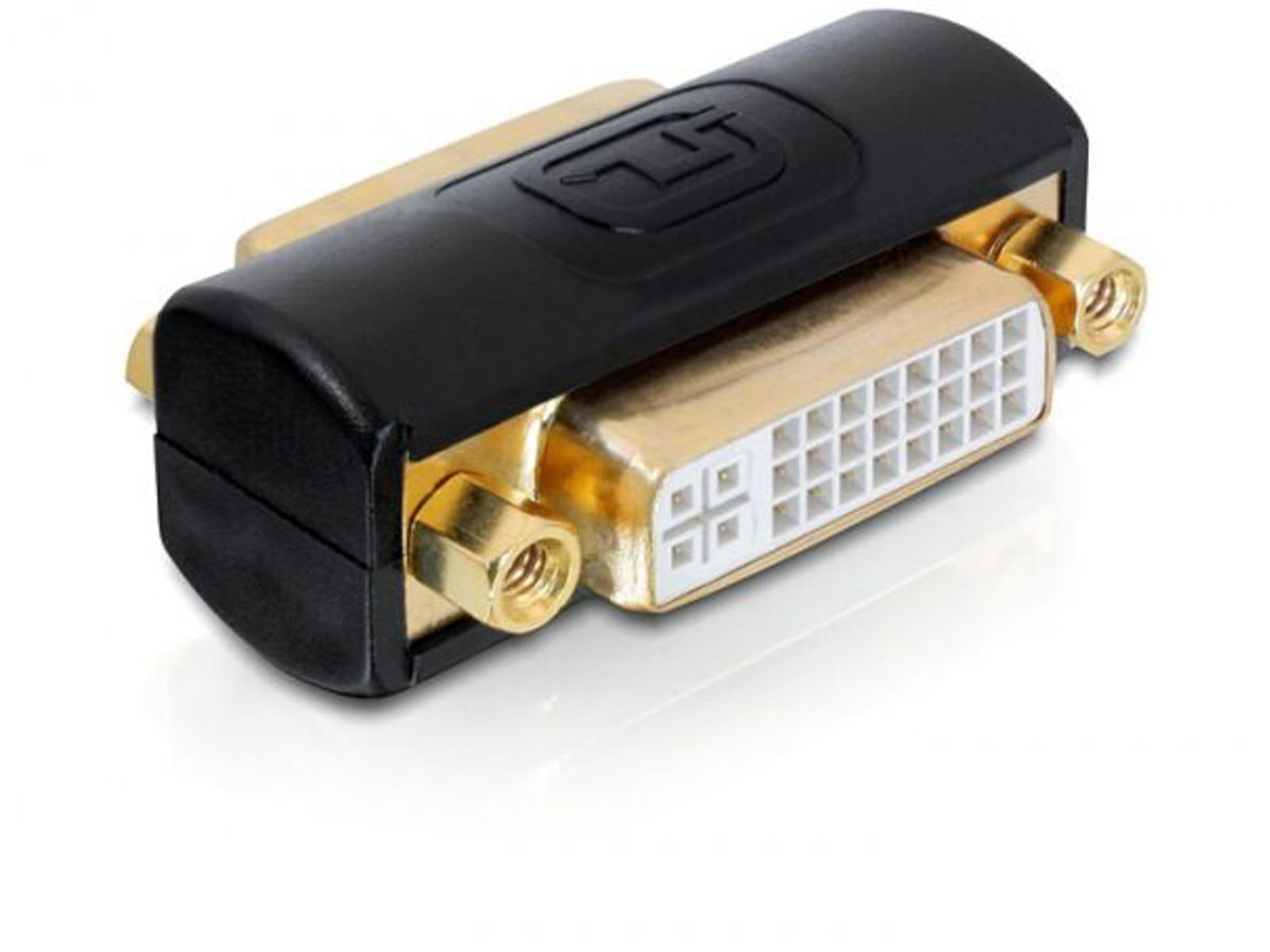 This DVI adapter by Delock can be use when extending a DVI cable connectio or if you want to convert a male DV interface into a female port. - Connection: DVI 24+5 pin female > female.- DVI connector with screw nuts.- Gold-plated connectors.