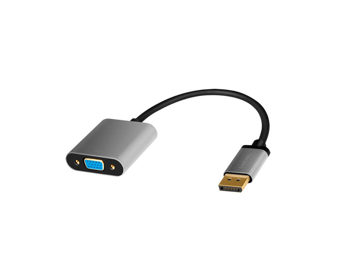 LogiLink CDA0109. Stik 1: DisplayPort, Stik 2: VGA, Kabellængde: 0,15 m, Stikforbindelse kontakter plettering: Guld. Produktfarve: Sort, Grå