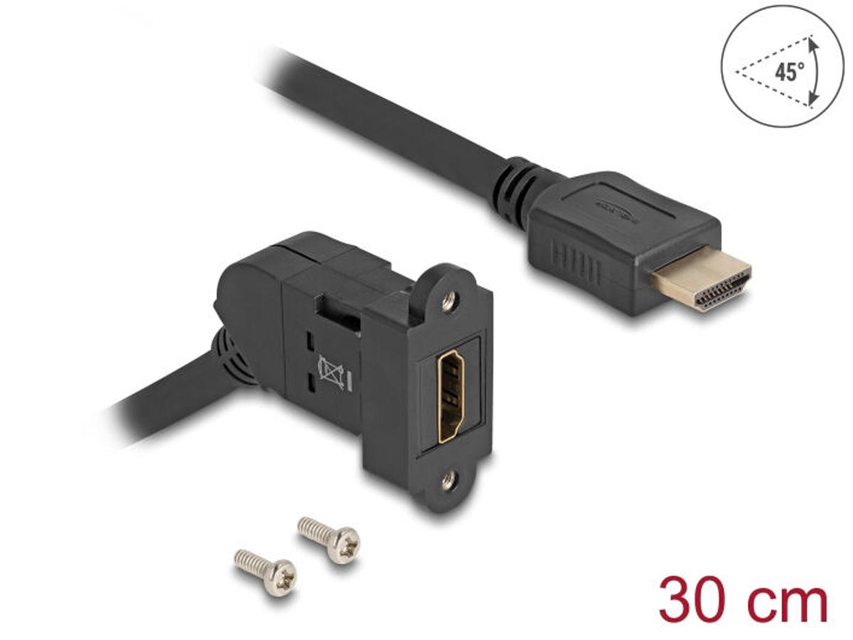 DeLOCK 67157. Stik 1: HDMI, Stik 2: HDMI, Kabellængde: 0,3 m, Stikforbindelse kontakter plettering: Guld. Produktfarve: Sort