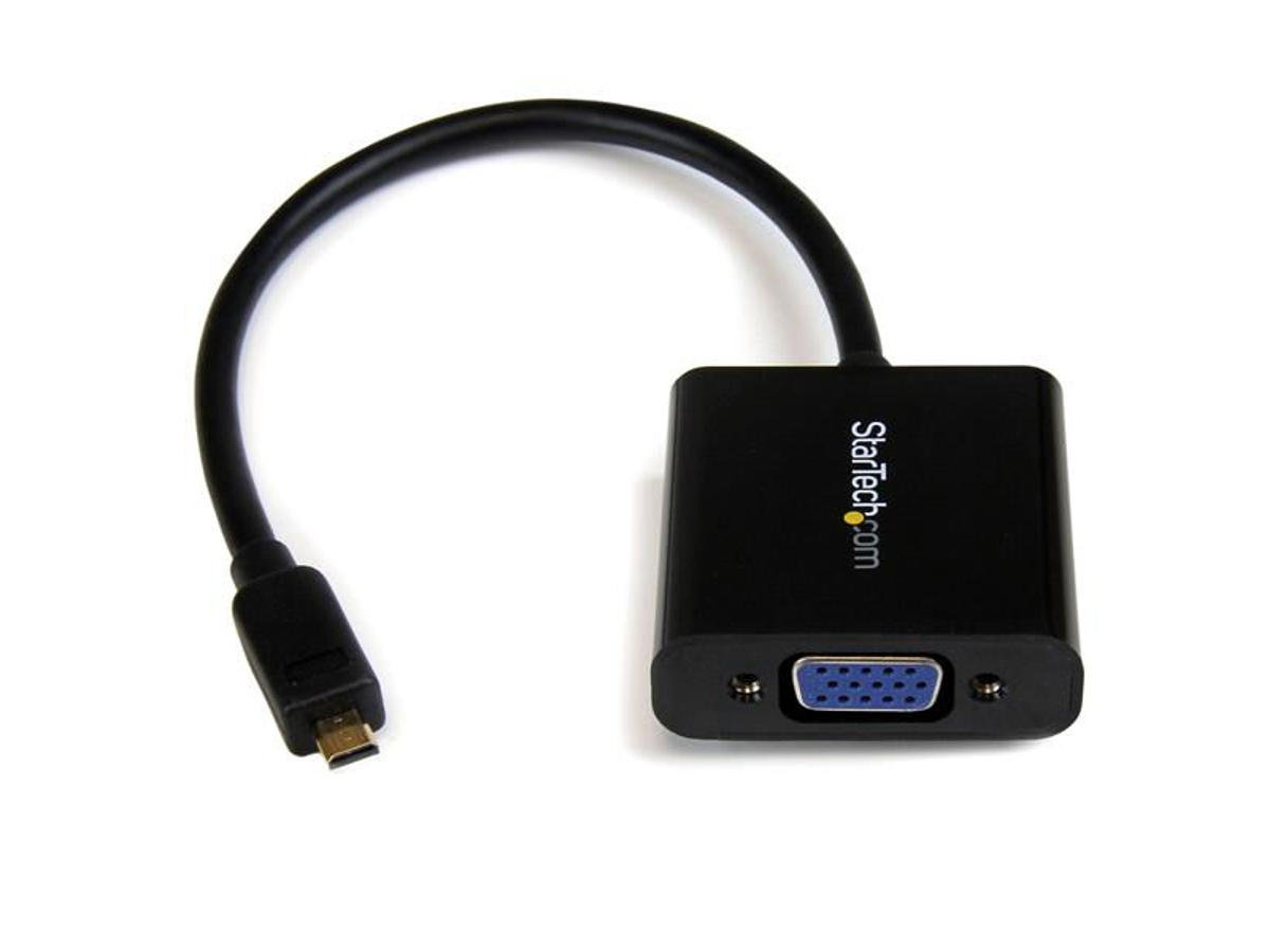 The MCHD2VGAE2 HDMI Micro to VGA adapter/converter actively converts an HDMI Micro video signal from your smartphone, Ultrabook, or tablet PC onto a VGA projector, or display. The Micro HDMI to VGA adapter is intended for displaying user generated content such as presentations, documents, and work sheets onto a VGA projector or monitor.