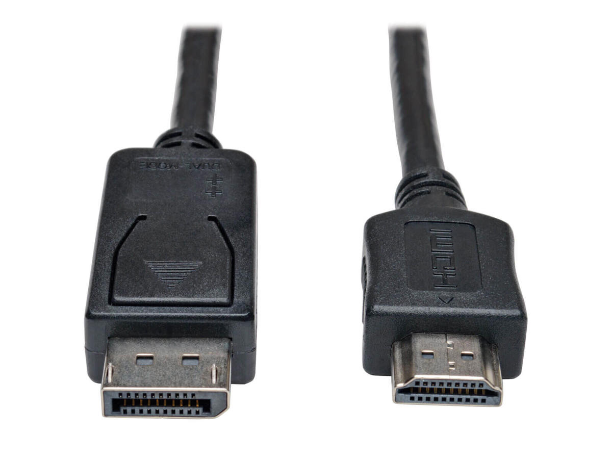 The P582-015 DisplayPort to HDMI Adapter Cable connects a DisplayPort computer to the HDMI port on a monitor, projector or television. With a DisplayPort male connector on one end and an HDMI male connector on the other, this cable requires no separate adapter. It lets you use your existing HDMI display instead of buying a new DisplayPort monitor.