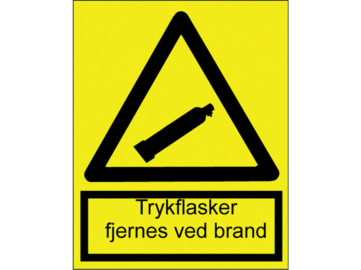 Advarselsskilt, A4, Plast, "Trykflasker fjernes ved brand", OX-ON