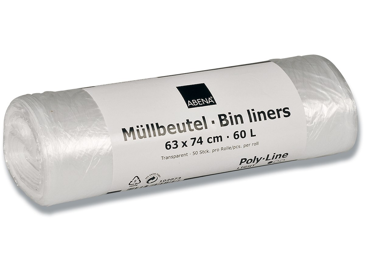 Affaldspose, 60 liter, 5.5 micron, Transparent, 1 rulle, 50 poser pr rulle, Abena