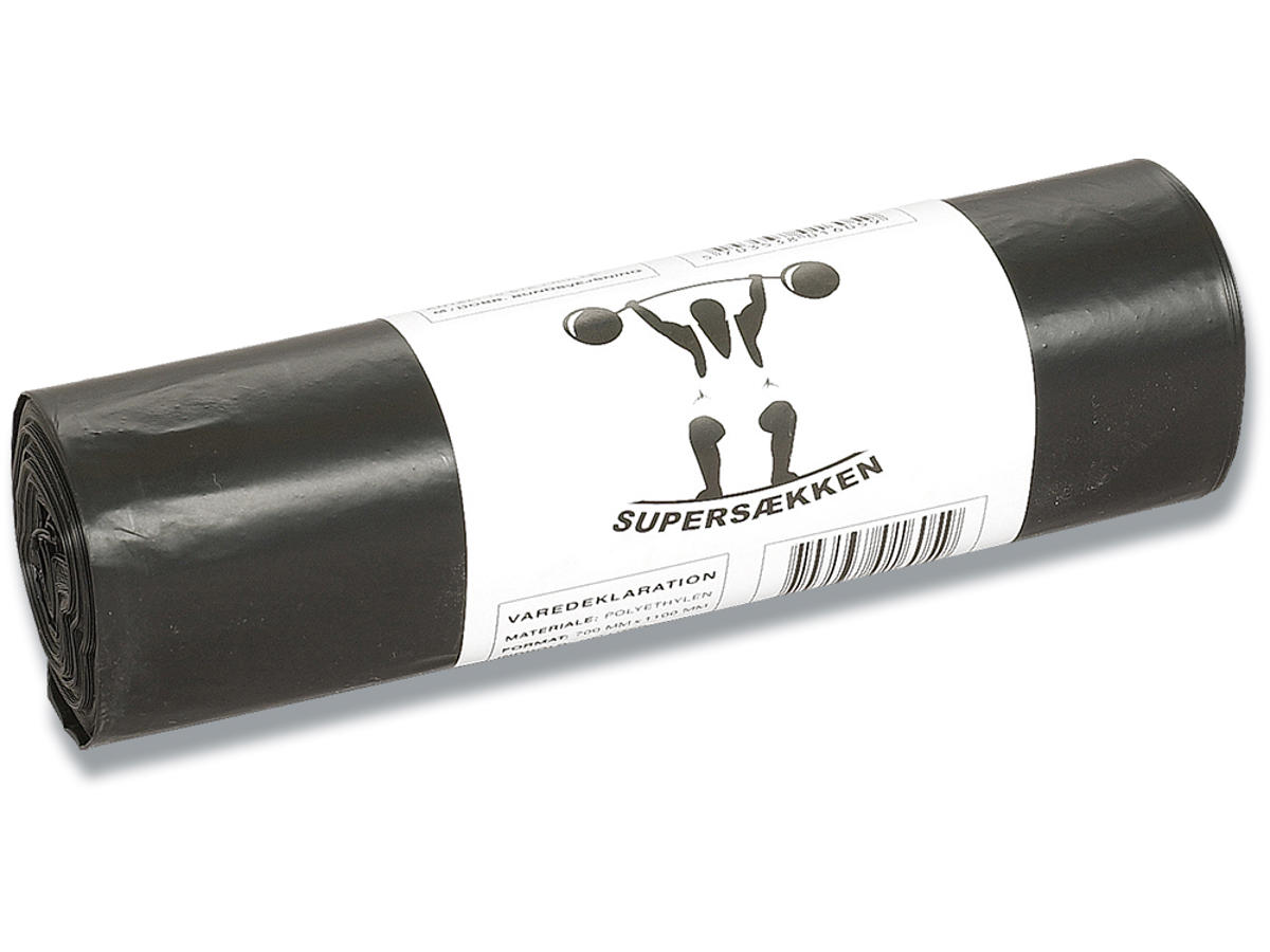 Den bedste råvarekvalitet og den særlige produktionsmetode ved fremstilling af Supersækken muliggør op til 50% reduktion af tykkelse uden at gå på kompromis med kvalitet og styrke. Supersækken er fødevaregodkendt og dermed egnet til alle typer fødevarer. Sækken er 100% lugtfri og en stærk dobbelt bundsvejs sikrer dig mod lækage. Sækken er velegnet til opsamling af blandet affald.