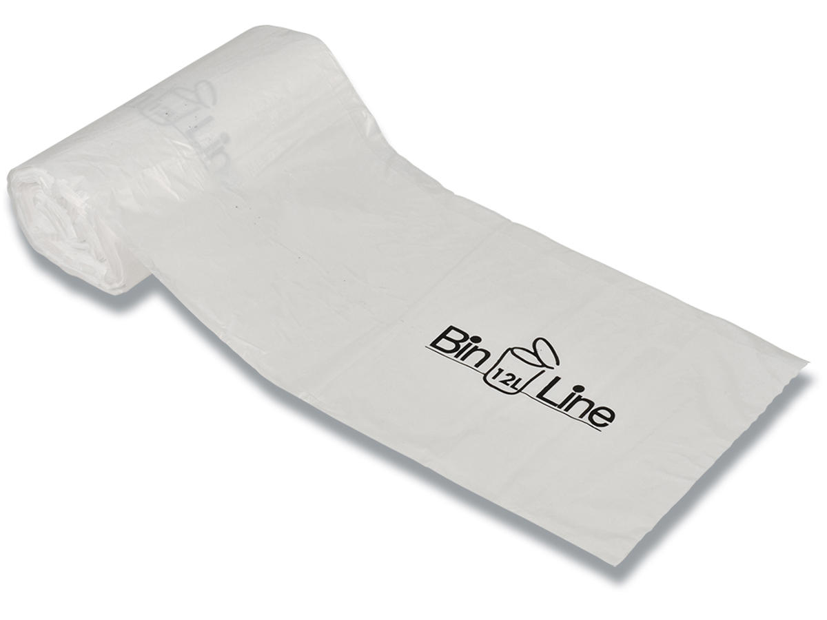 Affaldspose, 12 liter, 10 micron, Hvid, 1 rulle, 20 poser pr rulle, Bin-Line Rul-a-poser