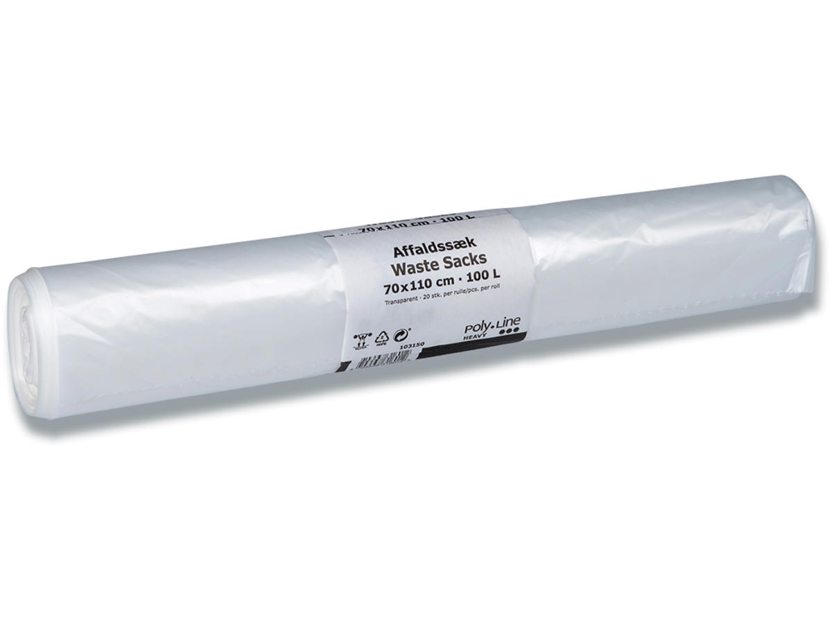 Plastsække klar 70x110cm 100L ultra HDPE 20stk/rl