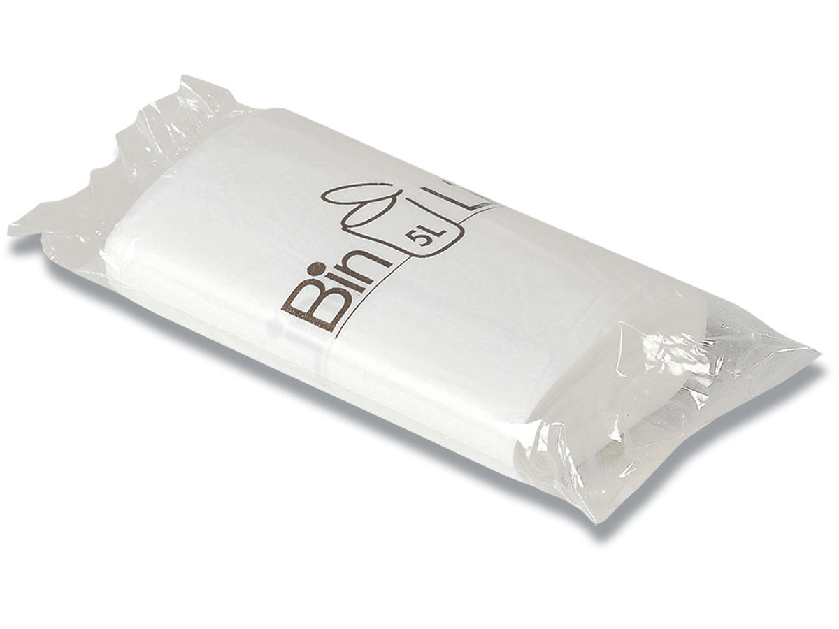 Affaldspose, 5 liter, 10 micron, Hvid, 1 rulle, 20 poser pr rulle, Bin-Line Rul-a-poser