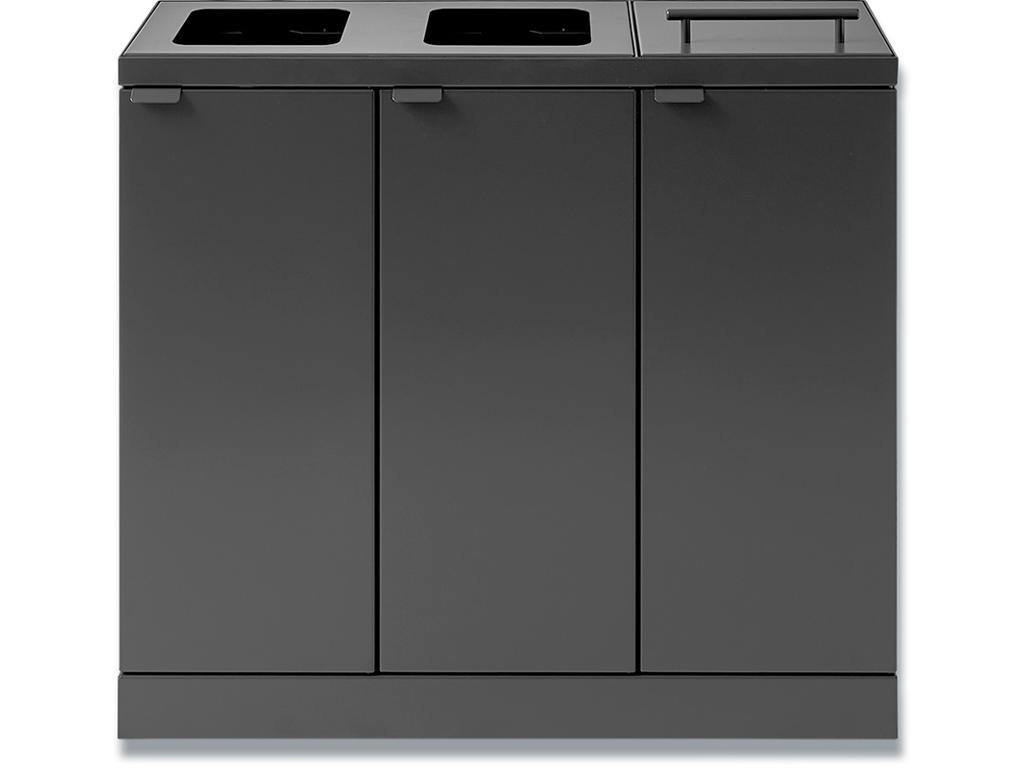 Fleksibelt affaldssystem fra Bica sikrer nem og brugervenlig affaldssortering på arbejdspladsen. Affaldssystemet er designet med 3 fraktioner med henholdsvis 2 åbne indkast og 1 med løftelåg. Formålet med låget er at minimere lugtgener og forhindre bananfluer ved sortering af madaffald. En rigtig smart løsning, hvis posen ikke tømmes så ofte.
