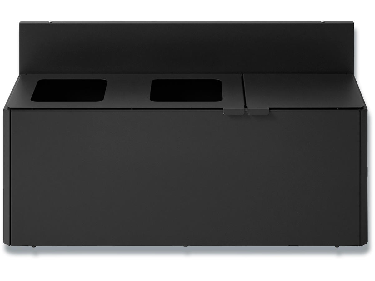 Smart væghægt affaldssortering fra Bica sikrer nem og brugervenlig affaldssortering på arbejdspladsen. Affaldssystemet er designet med 2 åbne indkast og 1 indkast med løftelåg. Formålet med låget er at minimere lugtgener og forhindre bananfluer ved sortering af madaffald. Affaldssystemet leveres med inderbeholdere efter ønske. Bica Model 912 er meget populær til affaldssortering på skole og uddannelsesinstitutioner.