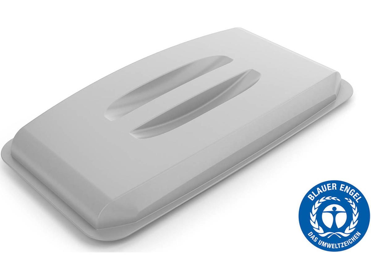 Låget DURABIN® LID ECO 60 er certificeret med det tyske miljømærke Blue Angel, som sætter høje standarder for miljøvenligt produktdesign og har været en pålidelig vejledning for mere bæredygtigt forbrug siden 1978. Den plast, som dette låget er fremstillet af, består af en høj procentdel indsamlet genbrugsplast, samtidig med at den har en lang levetid og er fuldt genanvendelig. DURABIN® serien kan benyttes til mange formål - f.eks. som stor papirkurv eller kildesorteringsløsning.