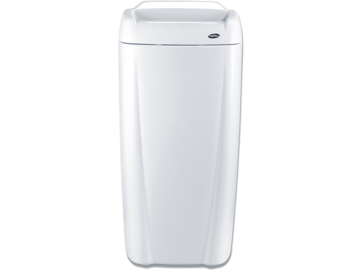 Affaldsspand med et stort rumindhold på 45 L, der sørger for at toiletmiljøet holdes rent. Bruges uden låg og kan vægmonteres, hvilket frigør dyrebar gulvplads. Let, robust og simpel at tømme. Affaldsspanden kommer udstyret med en vakuumpumpe, som udvider posen op til 30% mere indhold. Det skal bruges 6 x D- batterier (ikke inkluderet)