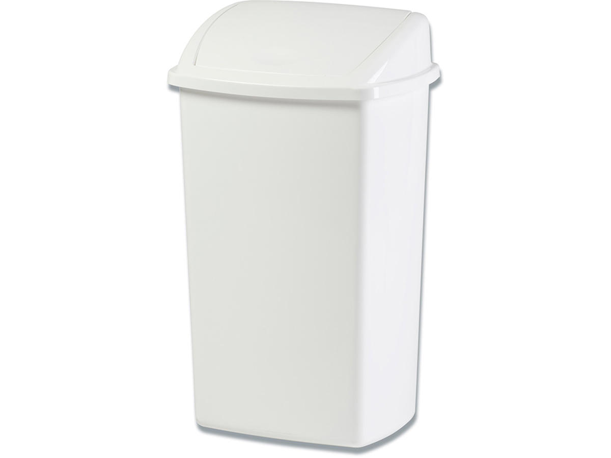 Affaldsspand i plast med svinglåg, der kan bruges enten stående på gulvet eller vægmonteres med beslag, der skal tilkøbes. Simpel løsning.