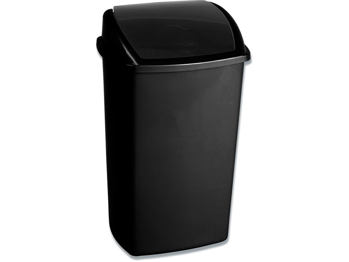 Affaldsspand i plast med svinglåg, der kan bruges enten stående på gulvet eller vægmonteres med beslag, der skal tilkøbes. Simpel løsning.