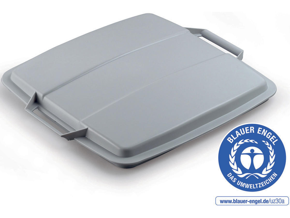 Låget DURABIN® LID ECO 90 er certificeret med det tyske miljømærke Blue Angel, som sætter høje standarder for miljøvenligt produktdesign og har været en pålidelig vejledning for mere bæredygtigt forbrug siden 1978. Den plast, som dette låget er fremstillet af, består af en høj procentdel indsamlet genbrugsplast, samtidig med at den har en lang levetid og er fuldt genanvendelig. DURABIN® serien kan benyttes til mange formål - f.eks. som stor papirkurv eller kildesorteringsløsning.