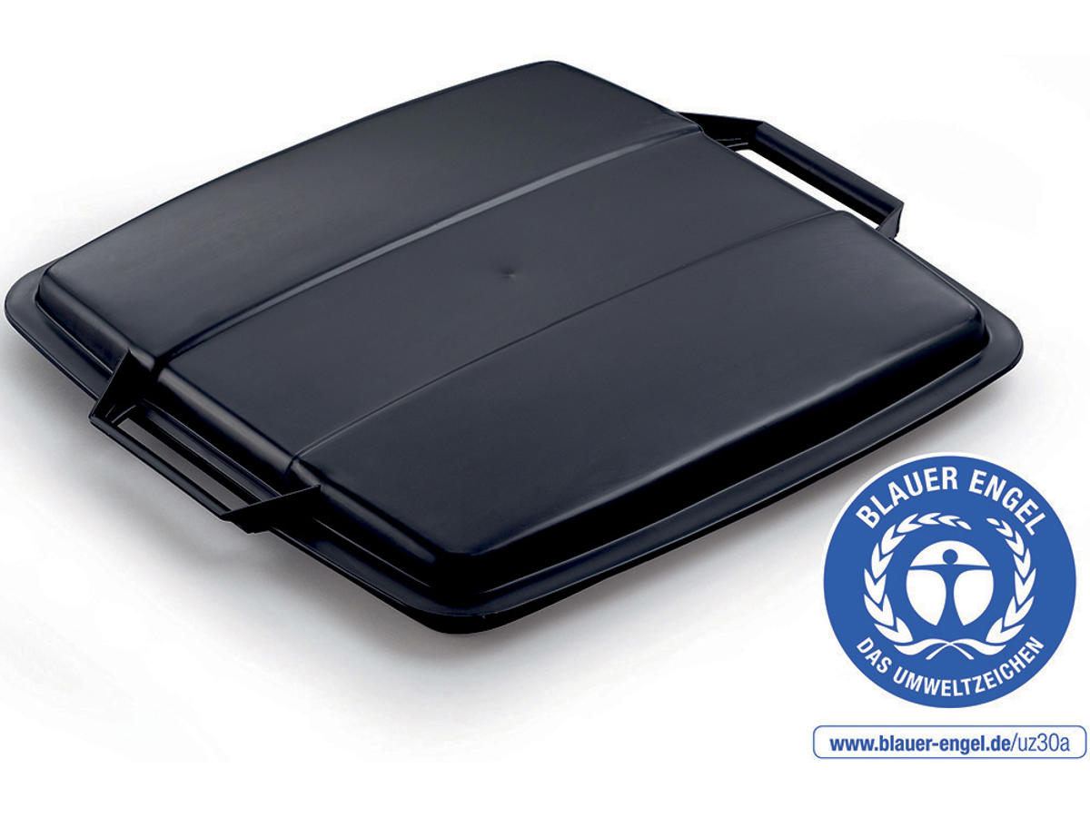 Låget DURABIN® LID ECO 90 er certificeret med det tyske miljømærke Blue Angel, som sætter høje standarder for miljøvenligt produktdesign og har været en pålidelig vejledning for mere bæredygtigt forbrug siden 1978. Den plast, som dette låget er fremstillet af, består af en høj procentdel indsamlet genbrugsplast, samtidig med at den har en lang levetid og er fuldt genanvendelig. DURABIN® serien kan benyttes til mange formål - f.eks. som stor papirkurv eller kildesorteringsløsning.