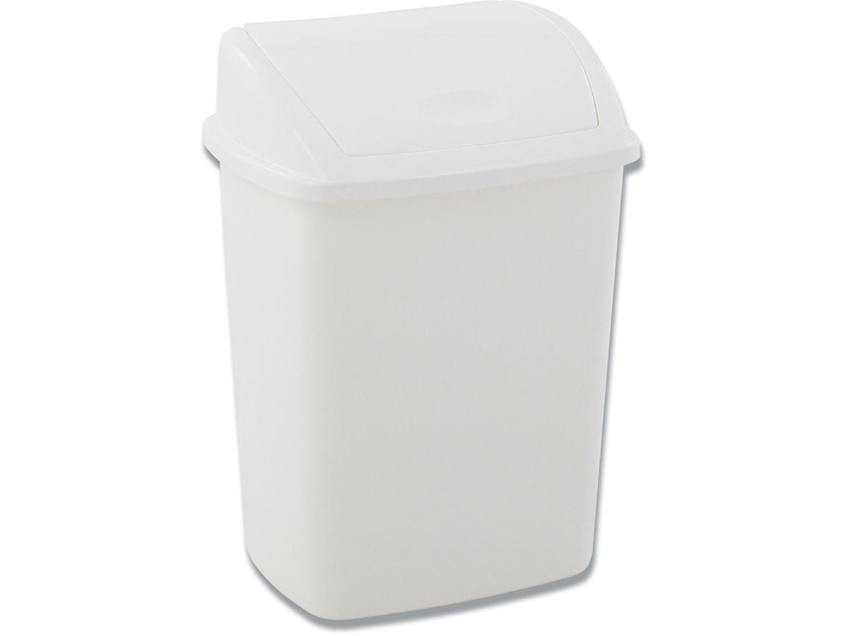 Affaldsspand i plast med svinglåg, der kan bruges enten stående på gulvet eller vægmonteres med beslag, der skal tilkøbes. Simpel løsning.