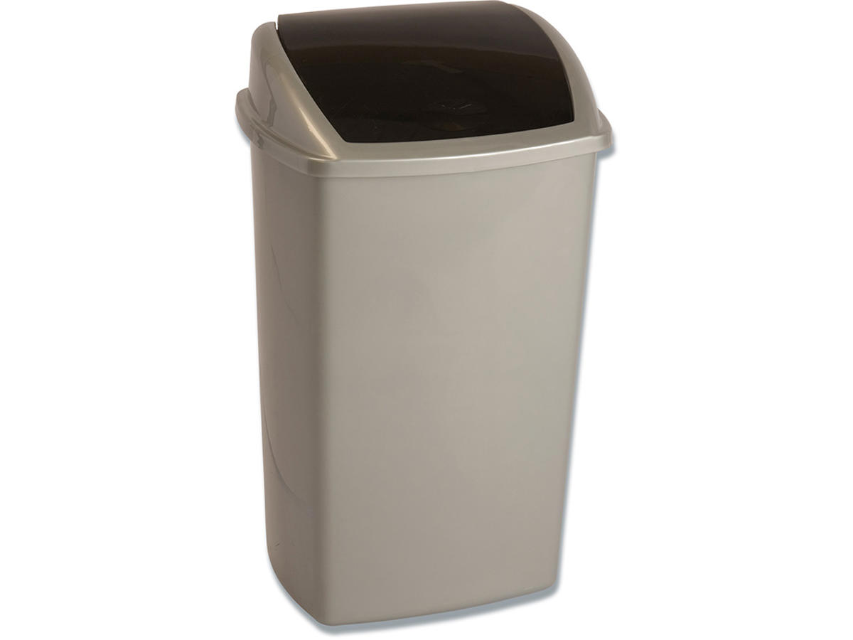 Affaldsspand i plast med svinglåg, der kan bruges enten stående på gulvet eller vægmonteres med beslag, der skal tilkøbes. Simpel løsning.