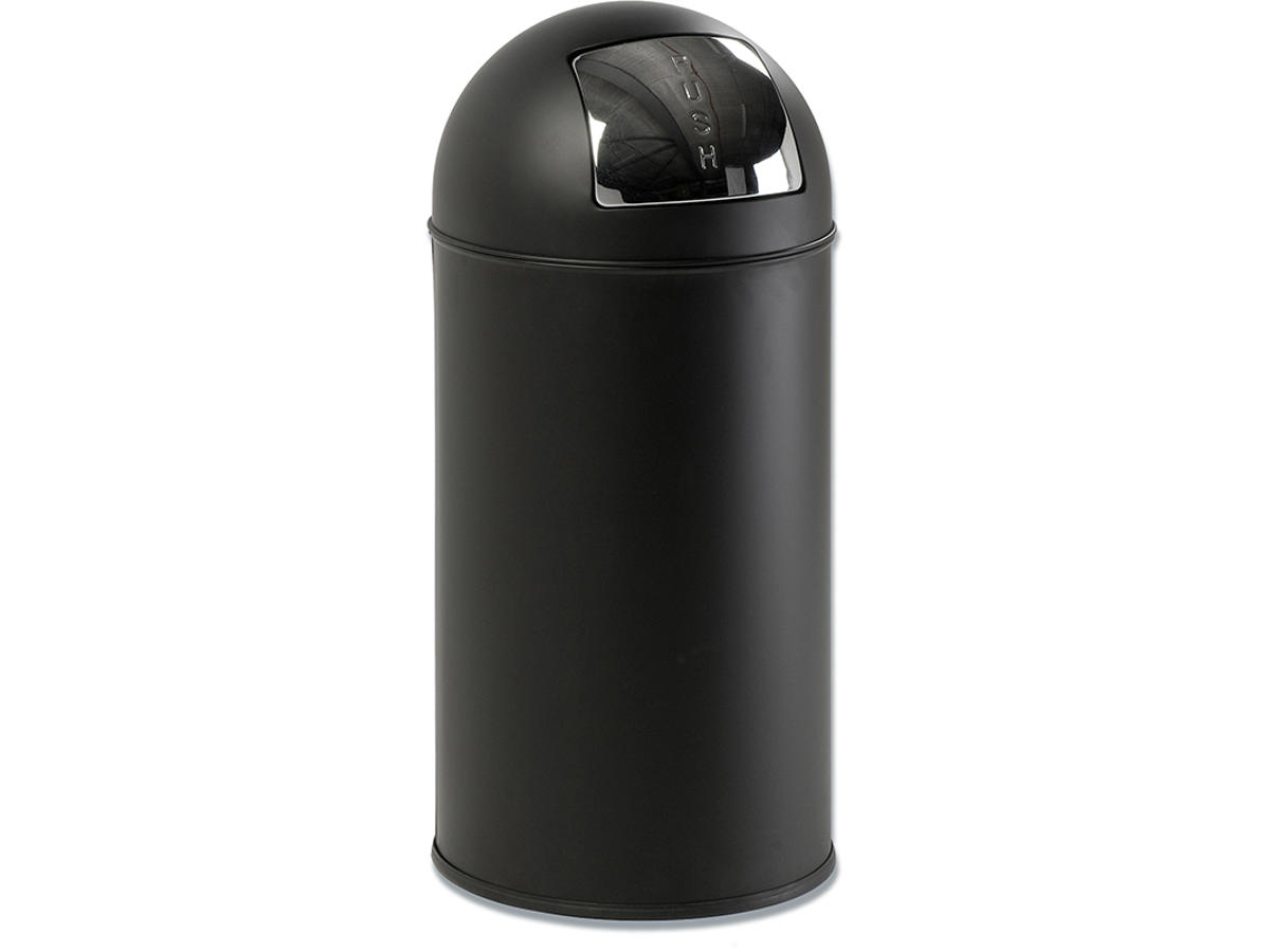 Affaldsspand til indendørs brug med push låg, der skjuler affaldet og dermed giver et rent udtryk. Inderspand i metal, brandsikker.