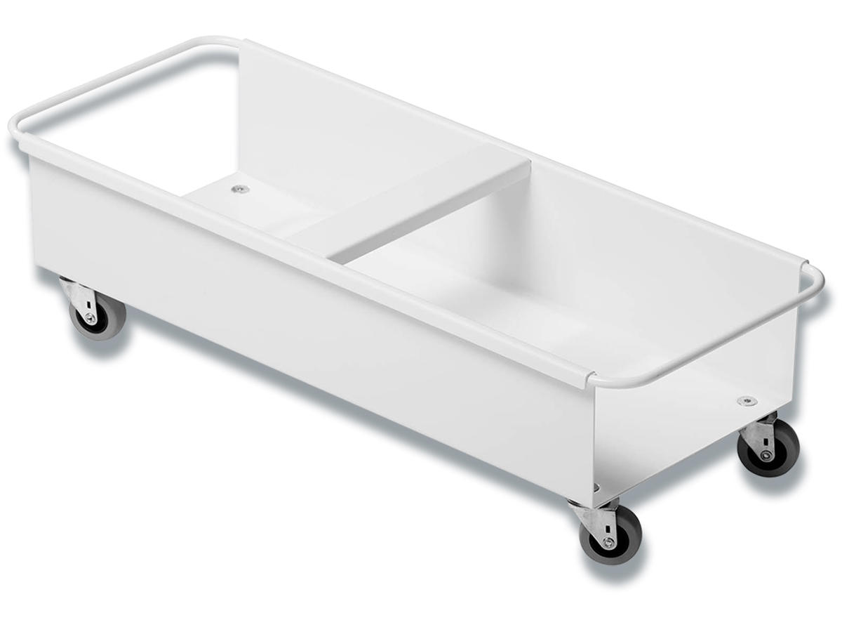 • Trolley af hvidlakeret metal med fire svingbare hjul
