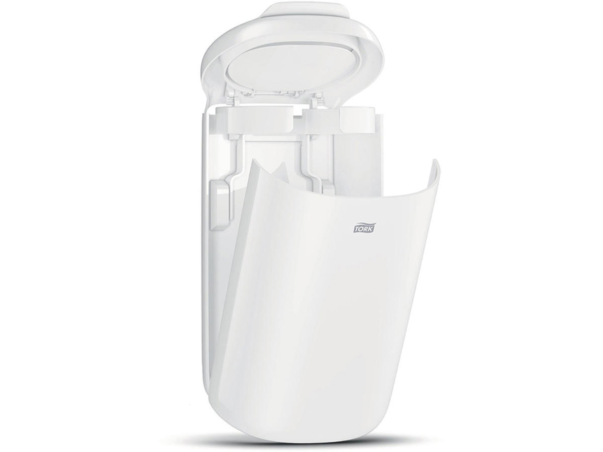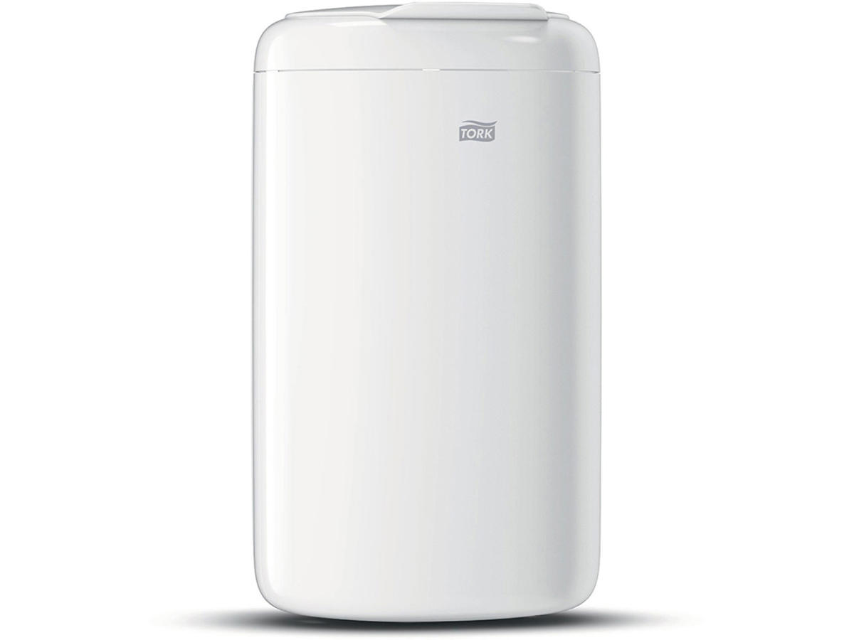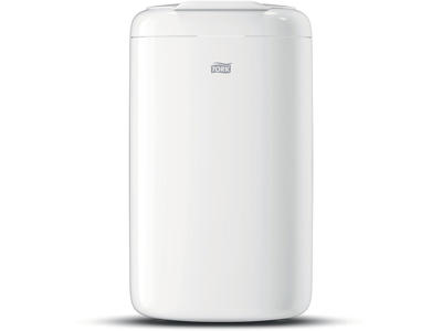 Tork 5 L Affaldsbeholder i Elevation Design til almindeligt affald på små toiletter eller som hygiejnespand ved toilettet. Selvlukkende låg og skjult affaldspose sikrer hygiejne og komfort. Tork Elevation dispensere har et funktionelt, moderne design, der giver en oplevelse af høj kvalitet.