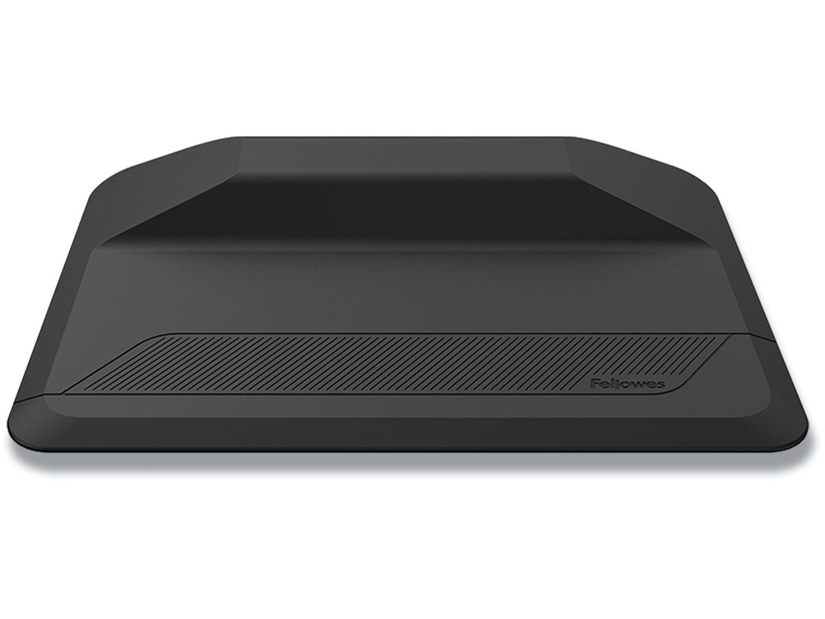 Trykaflastende ergonomisk ståmåtte med elevation udviklet af Fellowes for at opnå den mest behagelige og varierede stilling til stående skrivebordsarbejde. Forhøjede kanter reducerer risikoen for at snuble over tæppet.