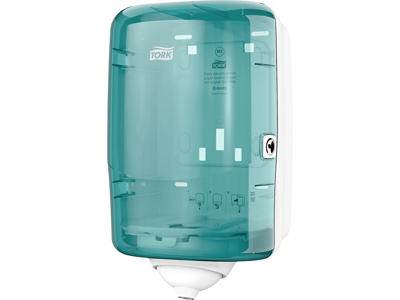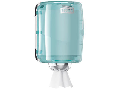 Aftørringsdispenser, Til aftørringsruller, Centerfeed, Turkis-hvid, Tork Mini Transportabel M1 Aftørringsdispenser, Til aftørringsruller, Centerfeed, Turkis-hvid, Tork Mini Transportabel M1