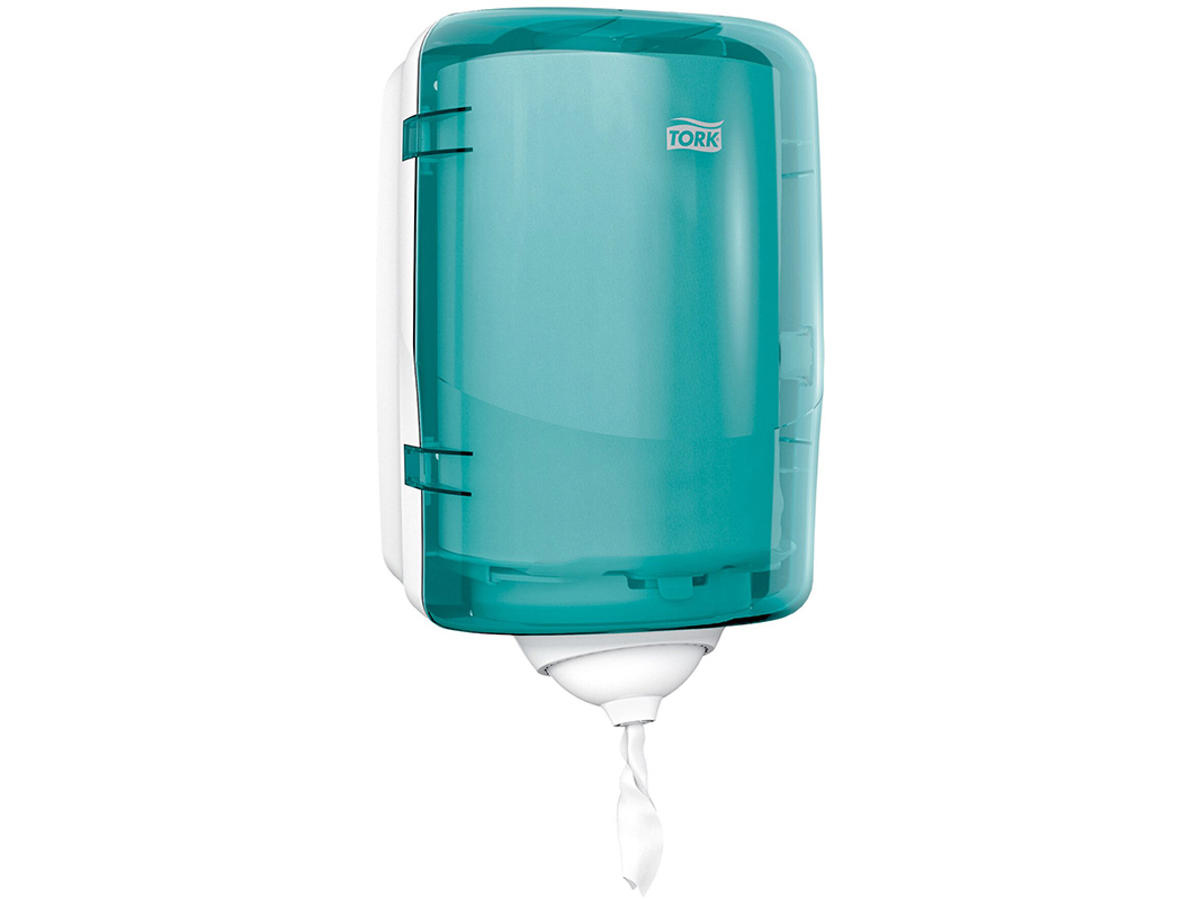 Aftørringsdispenser, Til aftørringsruller, Centerfeed, Turkis-hvid, Tork Reflex Mini M3