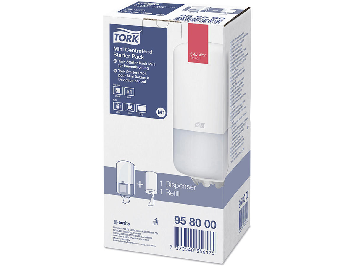Tork® Mini Centerfeed dispenser (M1) i Elevation Design er en kompakt, alsidig løsning til professionelle miljøer, hvor både hånd- og overfladeaftørring er nødvendig. Med flow-funktionen kan brugere tage så meget papir, som opgaven kræver, og tørre overflader hurtigt. Elevation dispensere har et funktionelt og moderne design.