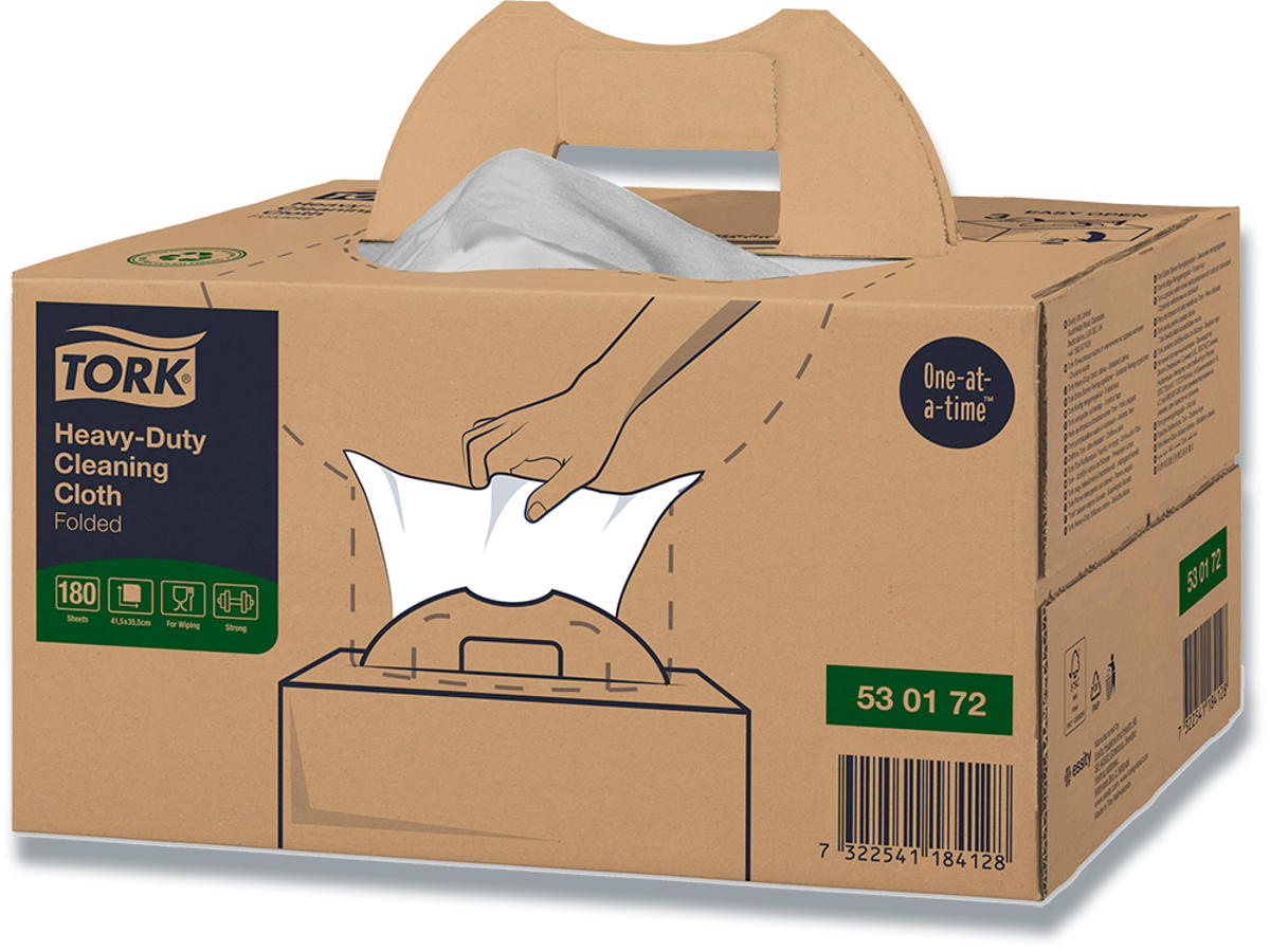 Svære rengøringsopgaver kræver en aftørringsklud, som er stærk og absorberende. Vores 1-lags Tork Aftørringsklud Kraftig matcher opgaven og kan bruges med de fleste opløsningsmidler til hurtigt at få klaret aftørring af olie, fedt og væsker.