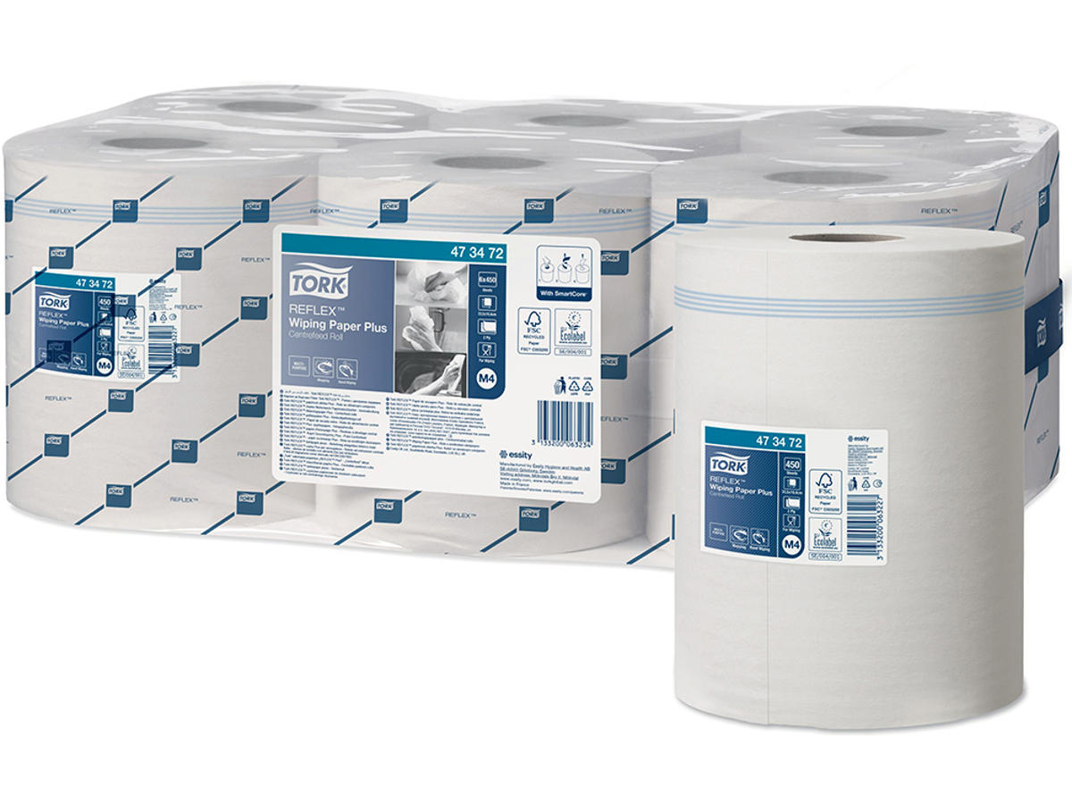 Allround 2-lags Tork Reflex™ aftørringspapir Plus er ideelt til at tørre spildte væsker op og til håndaftørring. Dette papir kan anvendes i Tork Reflex™ enkelt-ark centerfeed dispensere, som passer til dit personales arbejdsgang, reducerer forbruget og minimerer risikoen for krydskontaminering.