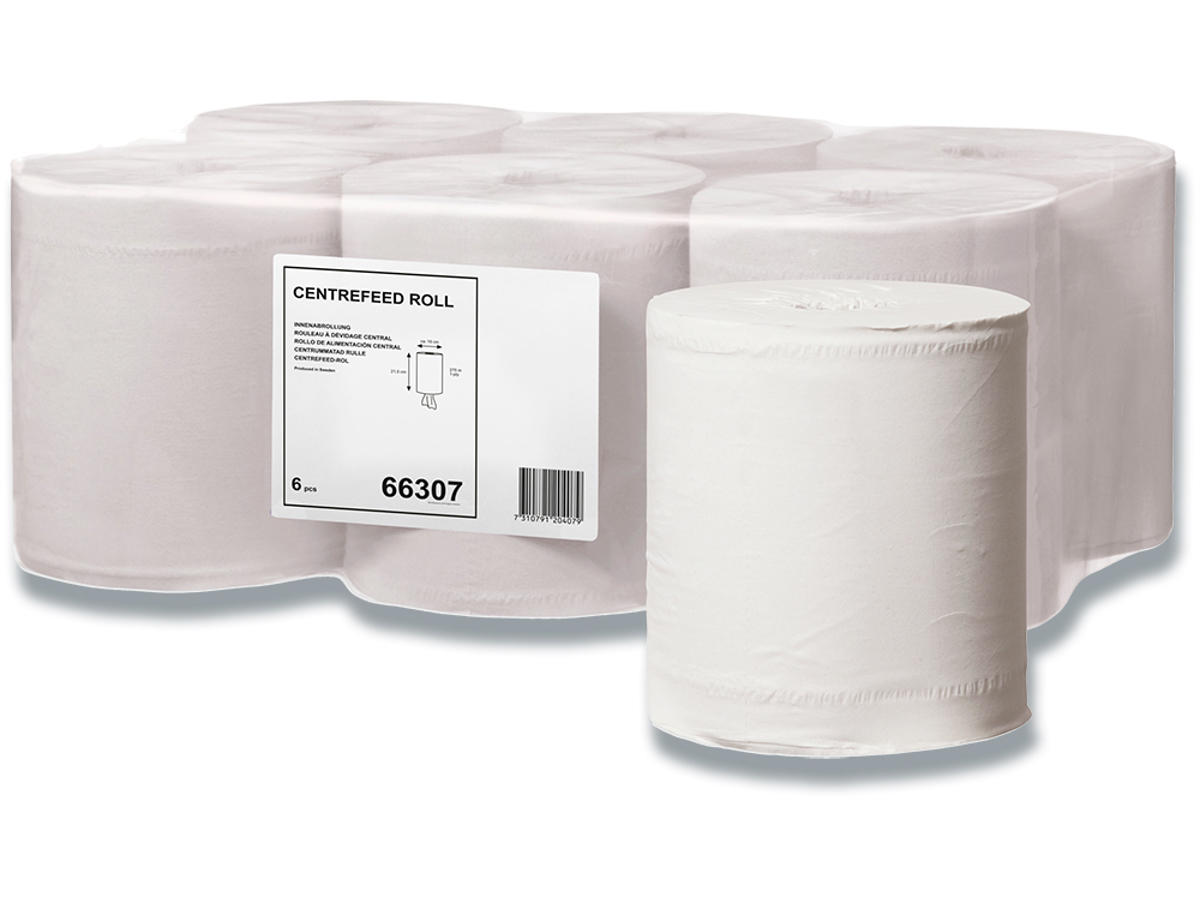 Aftørringsrulle, Centertræk, 1 lag, 6 ruller, Tork Standard M2