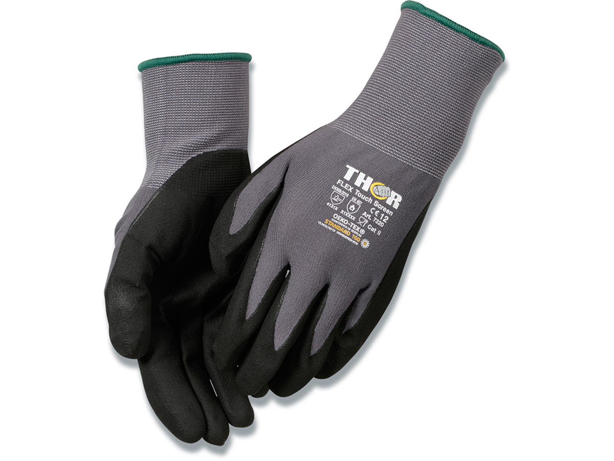Arbejdshandsker, Polyester-nitril-lycra, Str. 12, Fingerdyppet, Thor Flex