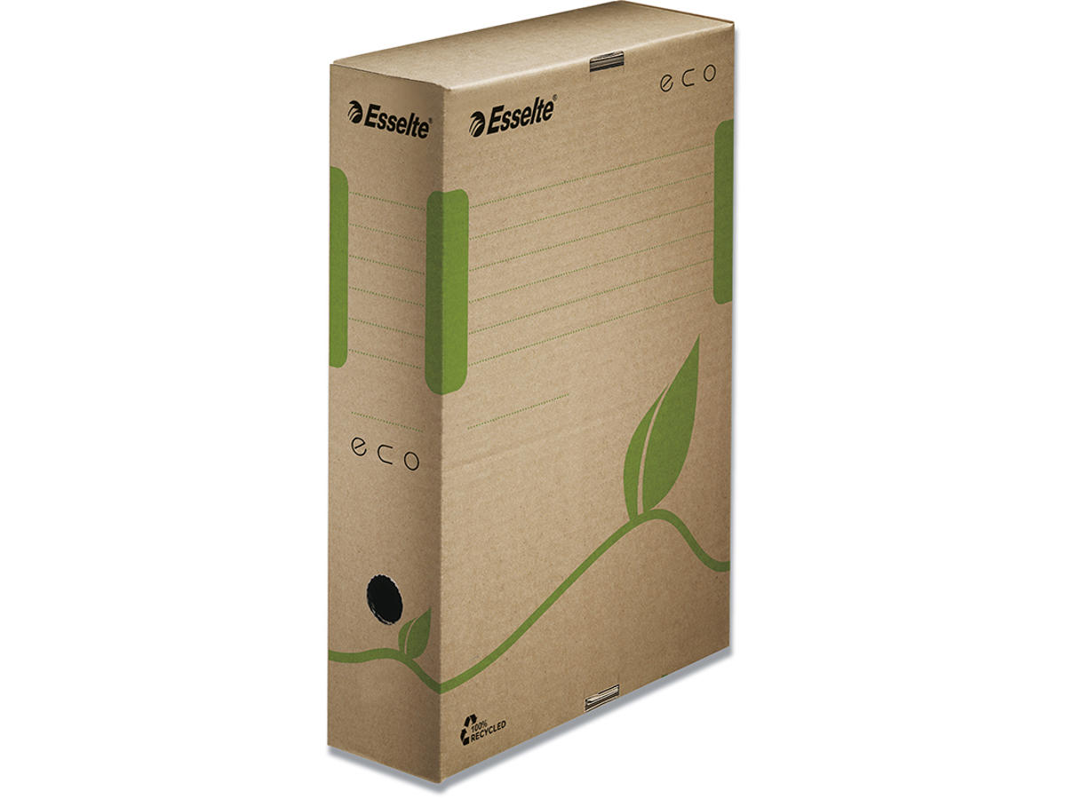 Ved at vælge Eco arkivæsker får du fordel af en omkostningseffektiv løsning til arkivering af dokumenter, og du bidrager samtidigt til at beskytte af vor planet. Dette fuldt funktionelle produkt er fremstillet i 100% recirkuleret bølgepap, herunder 85% 'post-consumer' materiale. Den er 100% recirkulerbar.
