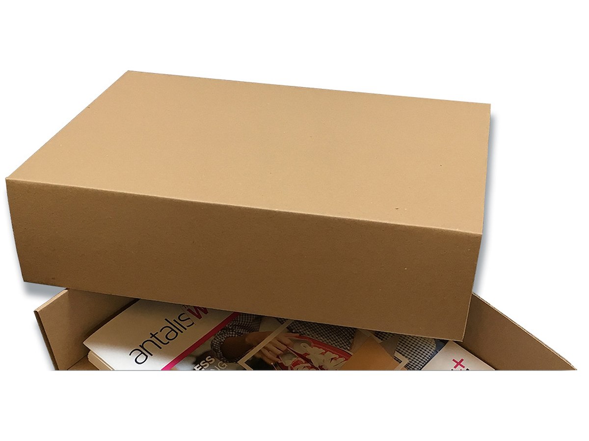 OBS: Dette varenummer er kun låget. Bunden skal tilkøbes. Rigsarkivskasser er sammensat af bund og låg for at kunne tåle stabling. De kommer med et skrivefelt på ydersiden og er nemme at åbne uden at skulle fjerne de ovenstående kasser. Arkivkasserne er udført i miljøvenligt 2 mm brun bølgepap og målene er angivet som indvendige mål i mm. (Længde x bredde x højde).