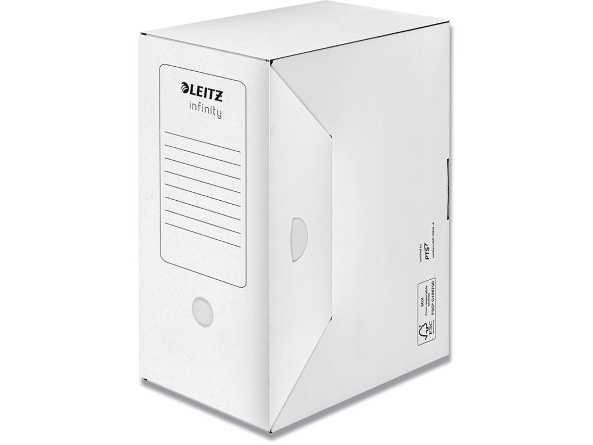 Leitz Infinity produkter opfylder de internationale ISO 16245 standarder for langtidsopbevaring af dokumenter. Denne syrefri serie af æsker og omslag er testet og certifiseret af papir teknologi specialister i Tyskland.