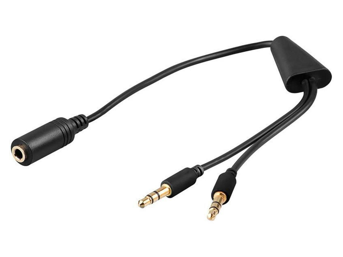 Microconnect AUDAL. Stik 1: 2 x 3.5mm, Stik 1 køn: Hanstik, Stik 2: 3.5mm, Stik 2 køn: Hunstik, Kabellængde: 0,4 m, Produktfarve: Sort